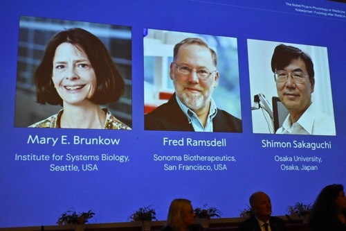 جایزه نوبل پزشکی امسال به سه ایمونولوژیست برجسته پزشکی Mary Brunkow, Fred Ramsdell از آمریکا وShimon Sakaguchi از ژاپن تعلق گرفت. آنان این جایزه را به سبب اکتشافات بنیادی خود در مورد تحمل ایمنی محیطی، مکانیسمی که به عنوان نگهبانان سیستم ایمنی، از حمله سیستم ایمنی به بدن جلوگیری میکند، دریافت نمودند. سیستم ایمنی بدن ما روزانه با عوامل بیماریزای بیشماری مبارزه میکند، اما باید با دقت بین آنچه خارجی است و آنچه خودی است تمایز قائل شود. در سال ۱۹۹۵، شیمون ساکاگوچی دسته جدیدی از سلولهای ایمنی، بنام سلولهای T تنظیمی ( رگولاتوری)، را کشف نمود که بازدارنده واکنشهای خودایمنی است. مری برونکو و فرد رامسدل اساس ژنتیکی این واکنش را در سال ۲۰۰۱ کشف کردند: آنها کشف کردند که جهش در ژن FOXP3 باعث یک بیماری خودایمنی شدید میشود. دو سال بعد، ساکاگوچی با اثبات اینکه FOXP3 توسعه سلولهای T تنظیمی را کنترل میکند، موفق شد هر دو کشف را به هم مرتبط کند. این اکتشافات، زمینه تحقیقات تحمل محیطی را ایجاد کرد و راههای جدیدی را برای درمان بیماریهای خودایمنی، سرطان و عوارض پیوند وعوارض پیوند گشود.
